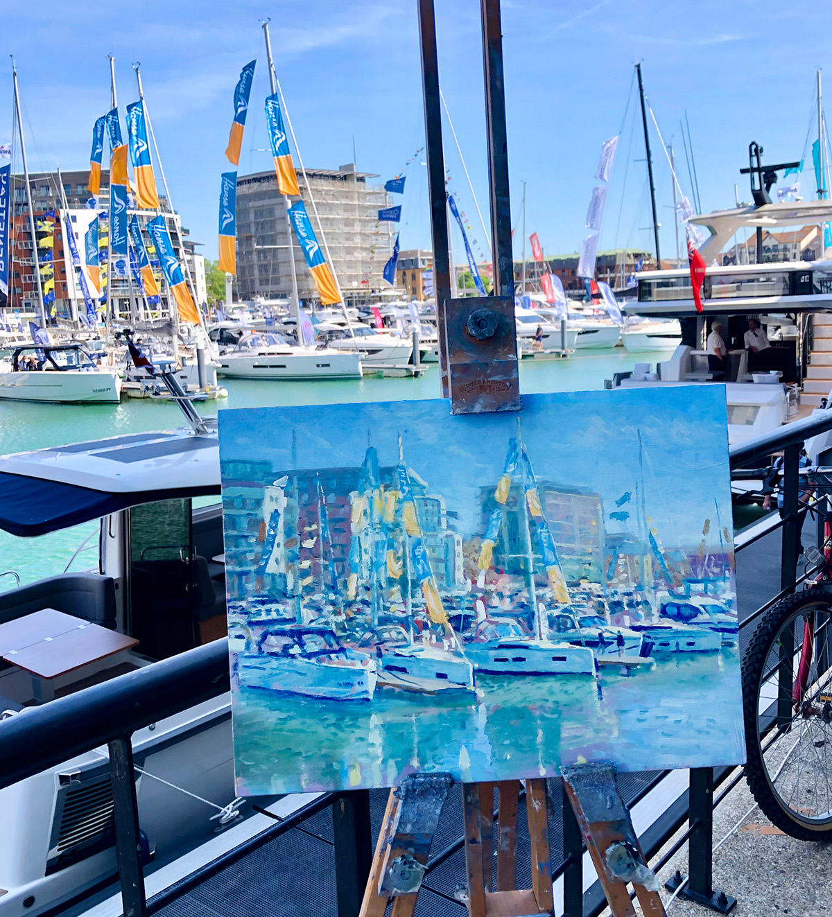 Our striking display of Hanse Yachts at this year’s South Coast Boat Show was the subject of a new painting by renowned local marine artist Gregory Smith.