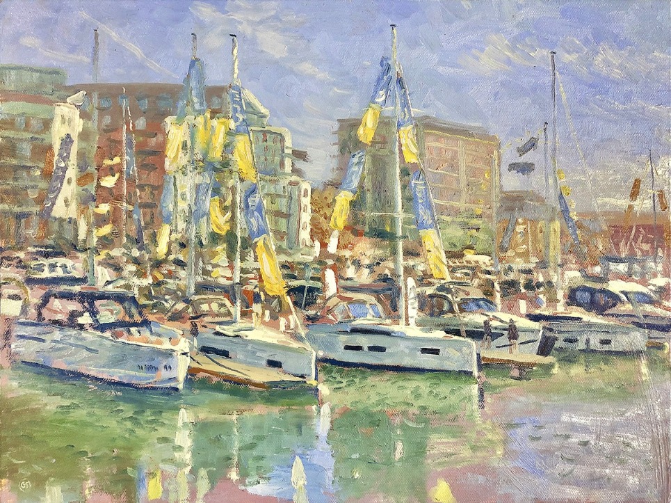Smith’s painting, produced en plein air at the show, captures the atmosphere of the weekend and the unique setting of Ocean Village.